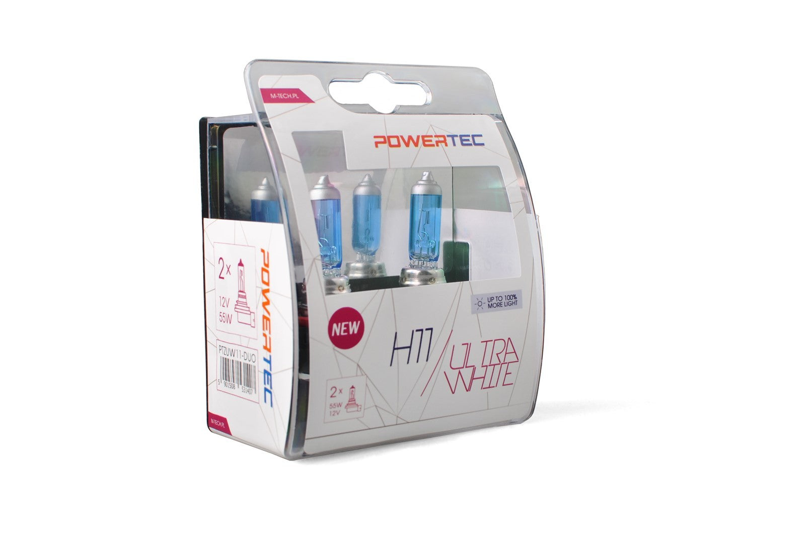 PowerTec SuperWhite HB4 12V 55W DUO BulbThe PowerTec Super White bulb guarantees up to 100% more light on the road compared to standard halogen bulbs.An applied blue layer does not cause a decrease in the quality or quantity of the emitted light.Thanks to it we obtain a perfectly white color effect, which is less tiring for the driver's vision, traffic signs and lines on the road are better visible.The elongated light beam allows you to see obstacles faster, ensuring greater safety on the road.DESCRIPTION:-Excellent tight focal length-Solid filament construction-Rich gas mixture-UV protection-Made of quartz glass-Tempered steel base-Elegant DUO packagingSPECIFICATIONS:Type: HB4Cap: P22dApproval: E4Wattage: 55WVoltage: 12VSymbol: PTZSWHB4-DUOUp to 100% more light.